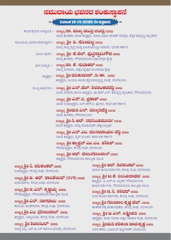 ಆತ್ಮೀಯರೇ, ಹಿಂದೂಸಾದರ ಕ್ಷೇಮಾಭಿವೃದ್ಧಿ ಸಂಘ, ಬೆಂಗಳೂರು ವತಿಯಿಂದ ಮತ್ತು ಗೌರಿಬಿದನೂರು ತಾಲ್ಲೂಕು ಸಮಿತಿ ಉಸ್ತುವಾರಿಯಲ್ಲಿ ಗೌರಿಬಿದನೂರಿನ ಇಡಗೂರು ರಸ್ತೆಯಲ್ಲಿ ನೂತನ ಸಮುದಾಯ ಭವನದ ಶಂಕುಸ್ಥಾಪನೆ ಕಾರ್ಯಕ್ರಮಕ್ಕೆ ಆತ್ಮೀಯ ಆಹ್ವಾನ... ಸ್ಥಳ : ವೀರಂಡಹಳ್ಳಿ,ಇಡಗೂರು ರಸ್ತೆ, ಗೌರಿಬಿದನೂರು. ಸಮಯ : ಶುಕ್ರವಾರ 16.01.2026 ರಂದು ಬೆಳಿಗ್ಗೆ 10.30 ಕ್ಕೆ